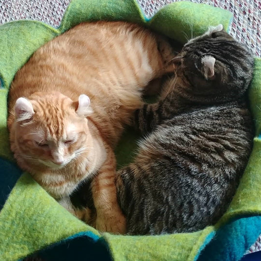 Our 14″ basket is great for cats and small dogs, up to 14 lbs. The roomy 20″ basket is perfect for larger pets, up to 25 lbs, or a couple of average size cats/toy dogs or a whole litter of kittens or puppies. Cats will have as much fun playing with their toys in it as sleeping.