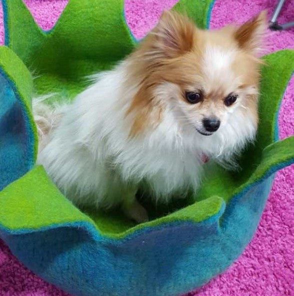 Our 14″ basket is great for cats and small dogs, up to 14 lbs. The roomy 20″ basket is perfect for larger pets, up to 25 lbs, or a couple of average size cats/toy dogs or a whole litter of kittens or puppies. Cats will have as much fun playing with their toys in it as sleeping. Our photographers gorgeous 16 lb cat is pictured in the 20″ basket.