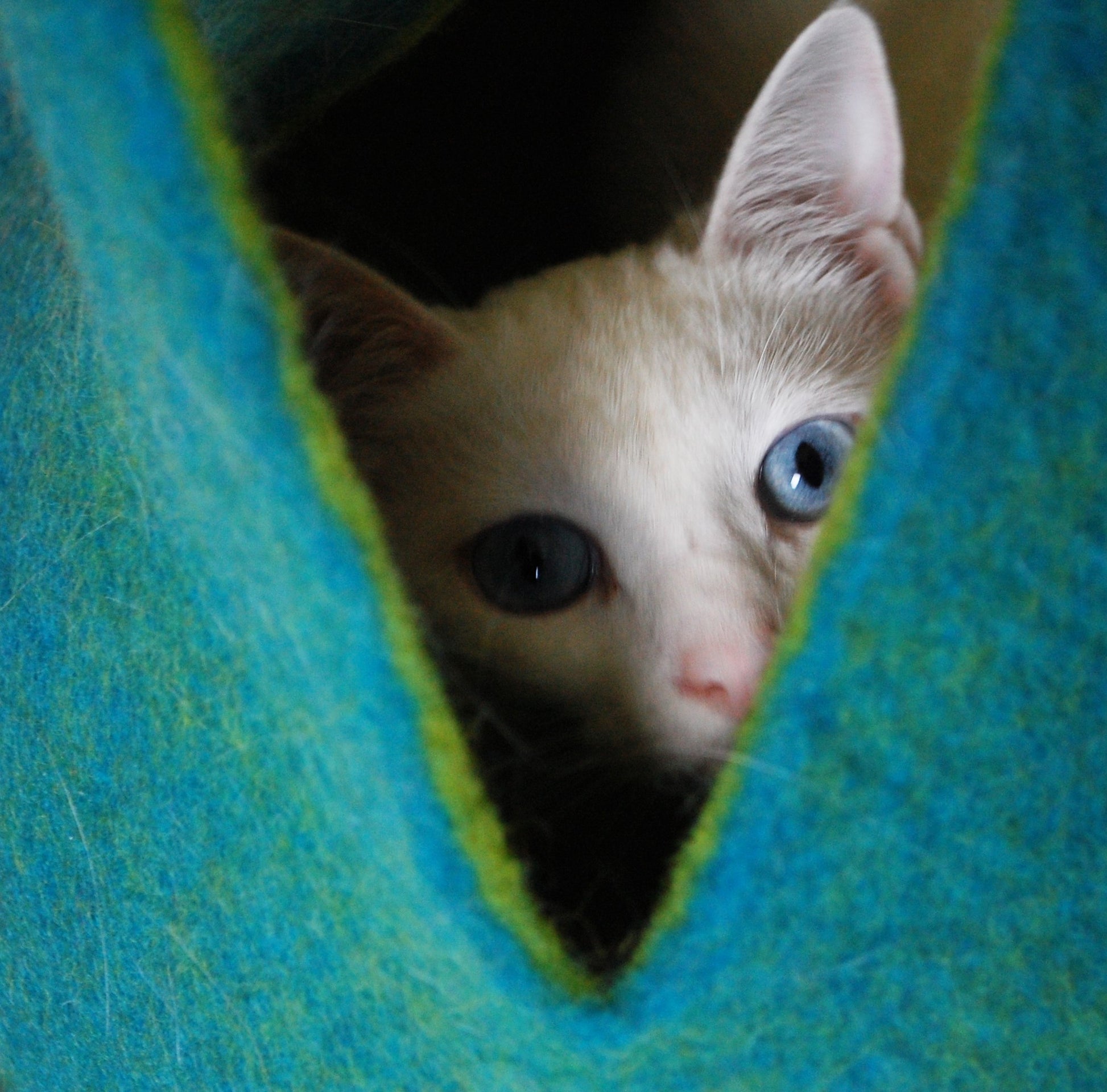 Diane K. Squeak aka Charles Wallace is very pleased with his wool basket and spends much time in it. He prefers it for play rather than sleeping but that is Squeak.