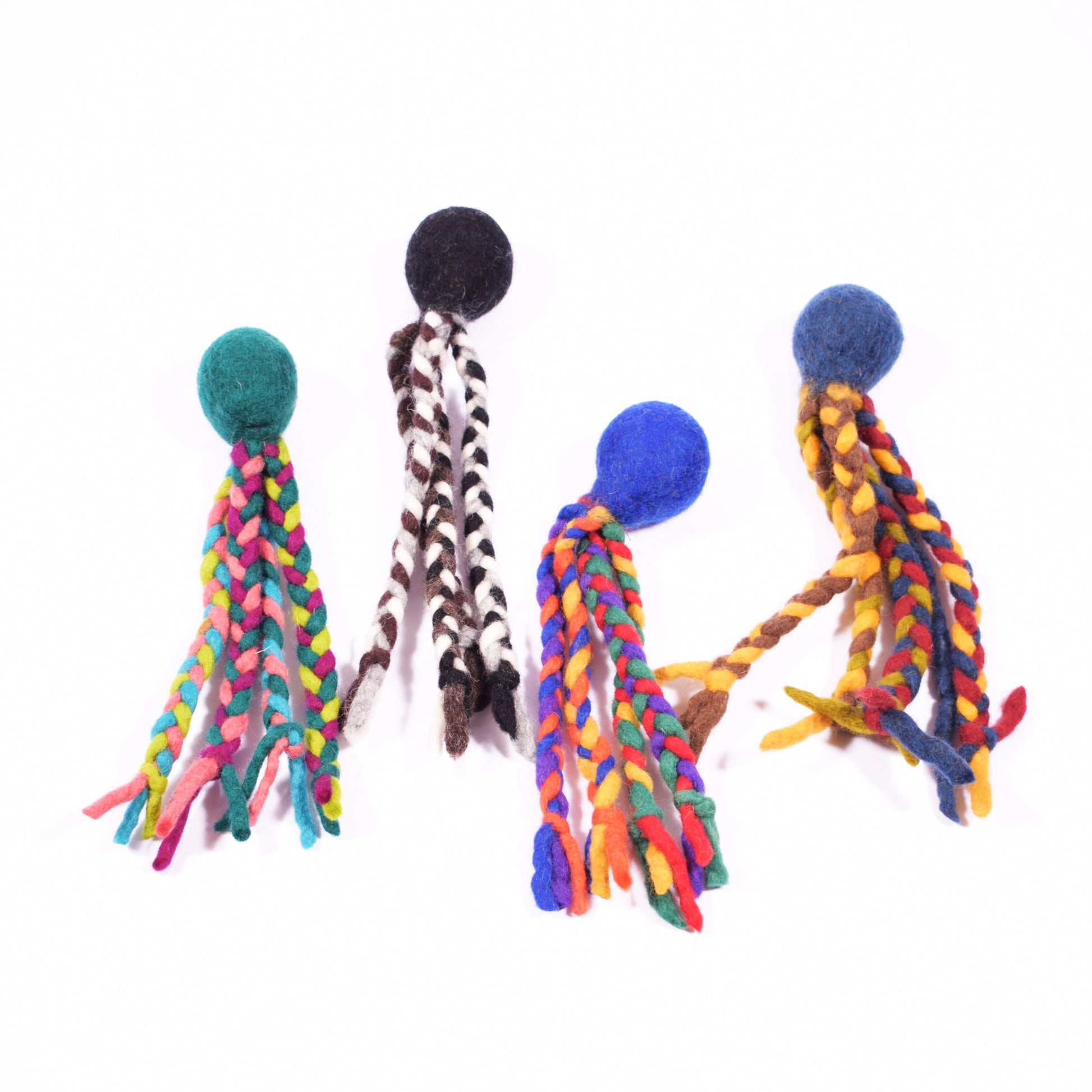 A 2" felt ball with flair—these wool toys come with 6" long, braided tails that spark instant pounce mode. Sold individually by color, they're built for cats who live for high jinks and back-leg flurries. One toy per pack, mischief included.