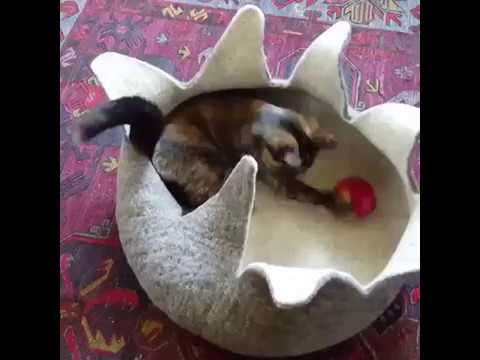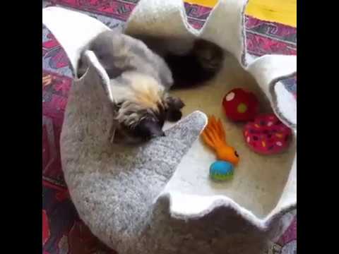 Squeak aka Charles Wallace is very pleased with his wool basket and spends much time in it. He prefers it for play rather than sleeping but that is Squeak.